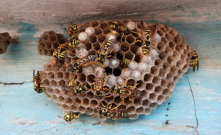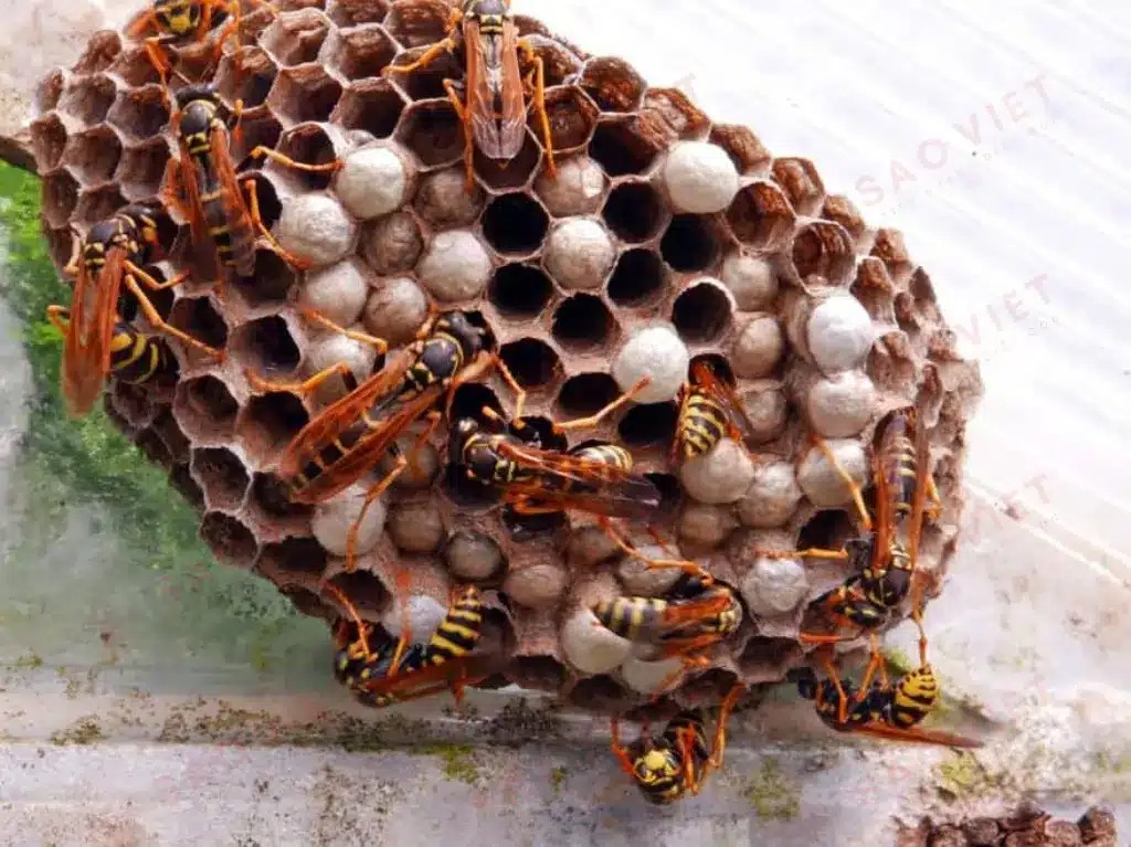 🔹 Ong vò vẽ – Thân to, sọc vàng đen, cực kỳ hung dữ, thường làm tổ ở mái tôn, trần nhà.