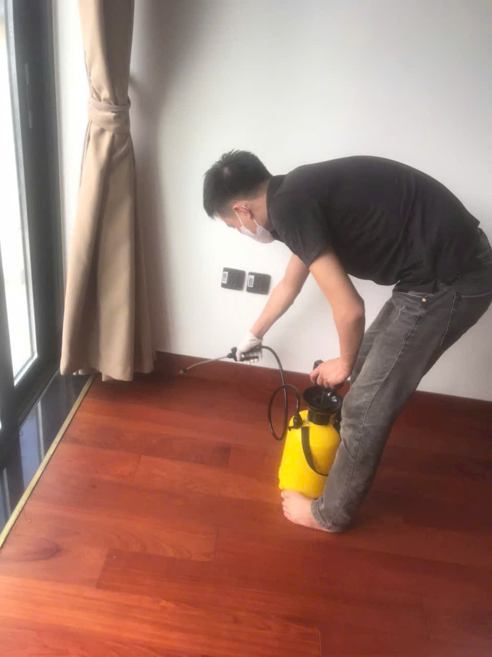 Khoảng 7 ngày sau, khi tổ mối đã bị tiêu diệt, chúng tôi thu dọn hộp nhử và phun dung dịch thuốc diệt mối sinh học (Termize, Mythic). Lớp màng bảo vệ này ngăn mối từ bên ngoài xâm nhập trở lại, giúp duy trì hiệu quả lâu dài.